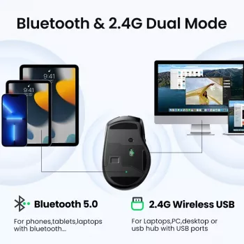 Wireless Ergonomic Mouse with Dual Mode, Silent Clicks & 4000 DPI